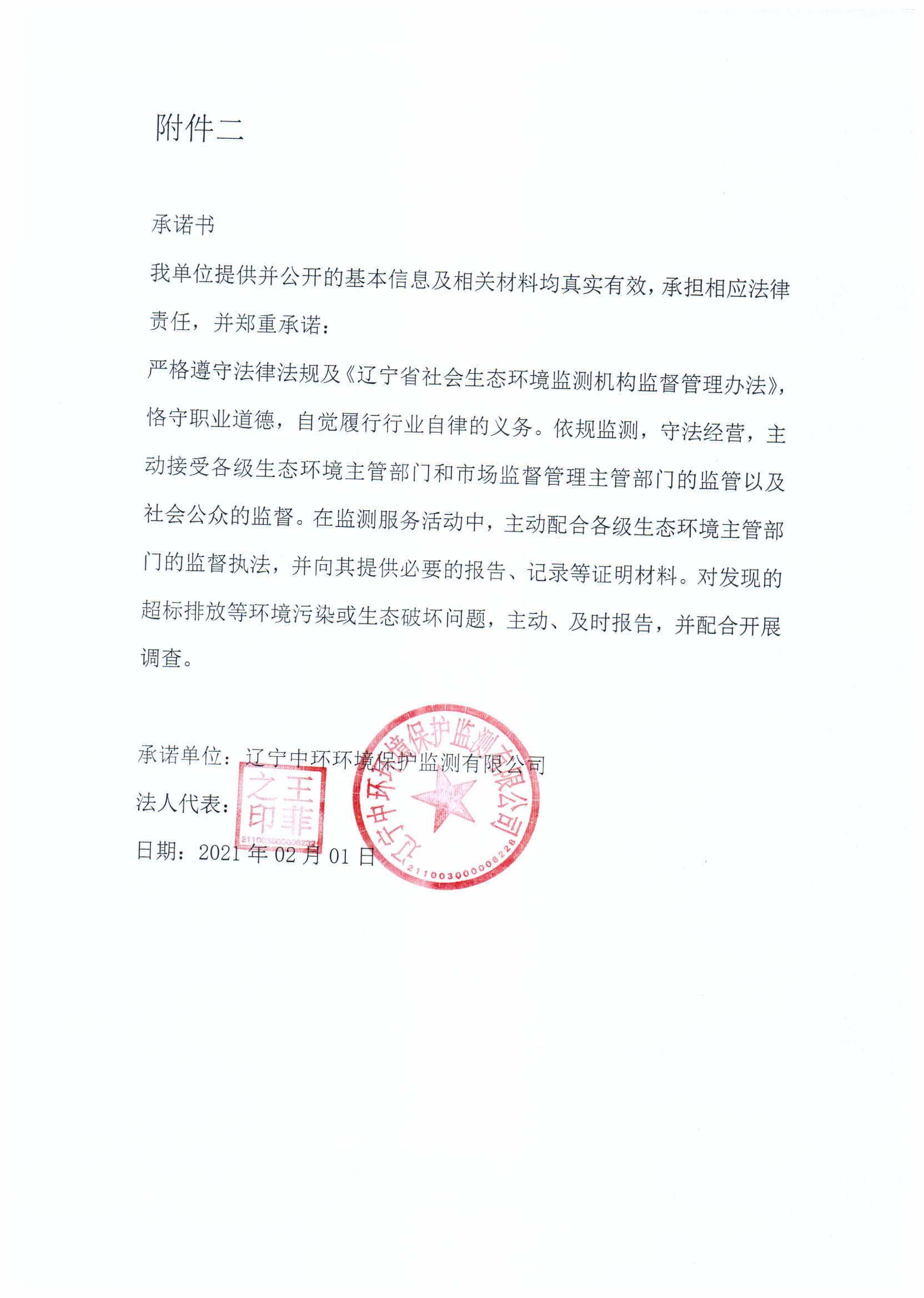遼寧中環(huán)環(huán)境保護(hù)監(jiān)測(cè)有限公司作為社會(huì)生態(tài)環(huán)境監(jiān)測(cè)機(jī)構(gòu)應(yīng)文件要求向